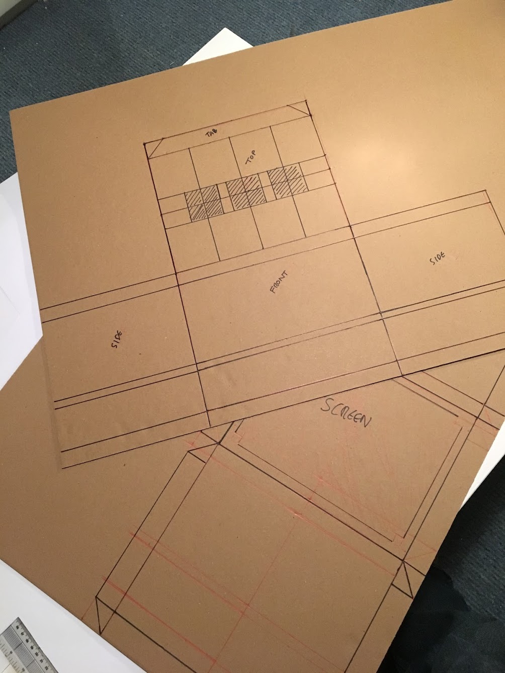 I scratch-built a full-scale cardboard prototype of the case, initially as a rough structural model and later as a more refined version. It was designed to allow paper UI screens, created by another group member, to be easily inserted and swapped during testing.