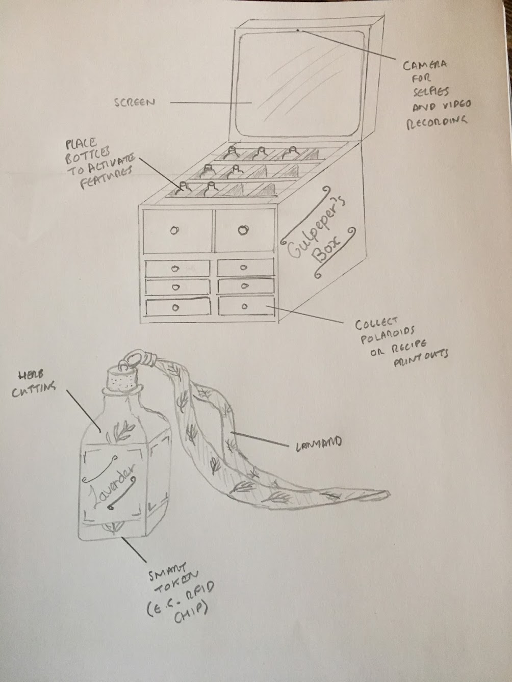 One early idea I proposed was an interactive 3D map of the garden that would allow visitors to listen to stories from plotholders and leave voice notes of their own. I built a small-scale physical mock-up of the garden to explore this idea but determined that the interaction opportunities were limited, and instead as a group we chose to develop a different concept I had suggested: Culpeper’s Case.
