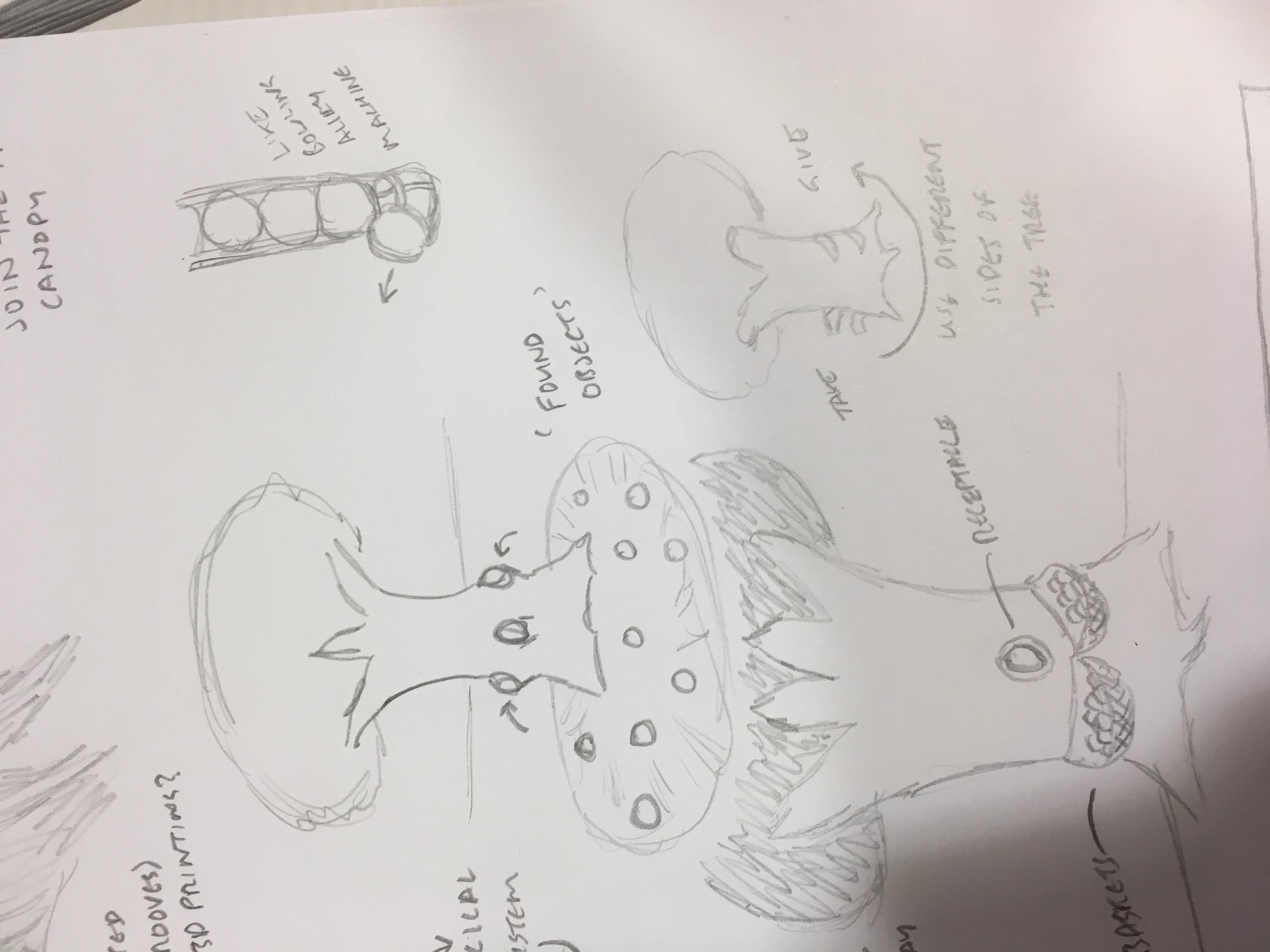 I produced several sketches of different tactile ways of interacting with the mood tree, including different textures, sensory outputs, and ways of using different artefacts with the tree.