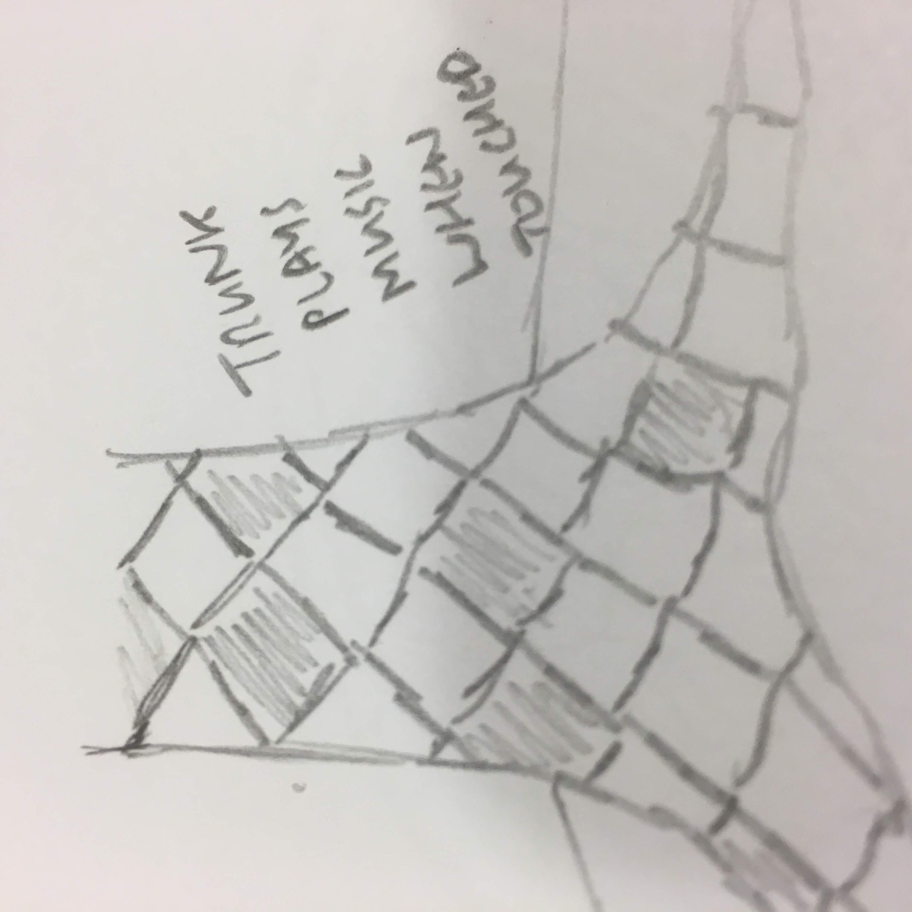 While we initially considered screens - and I made sketches of ways of incorporating screens into the tree - I moved away from this to approaches that felt more natural, discreet and playful.