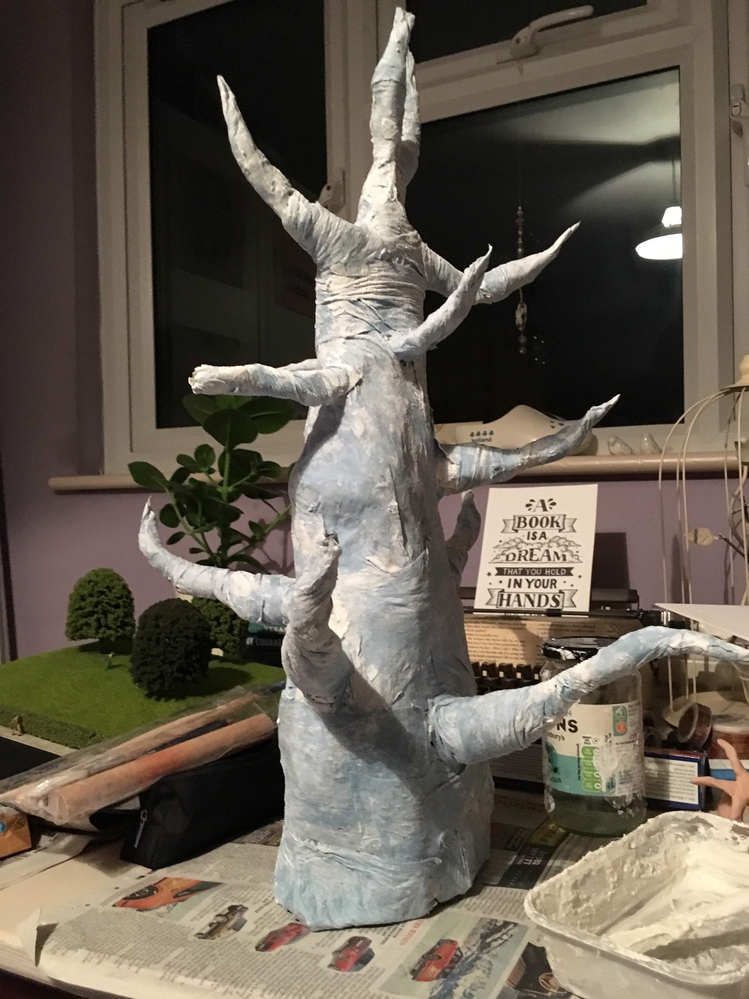 Reshaping branches with aluminium wire building form using masking tape and paper mache