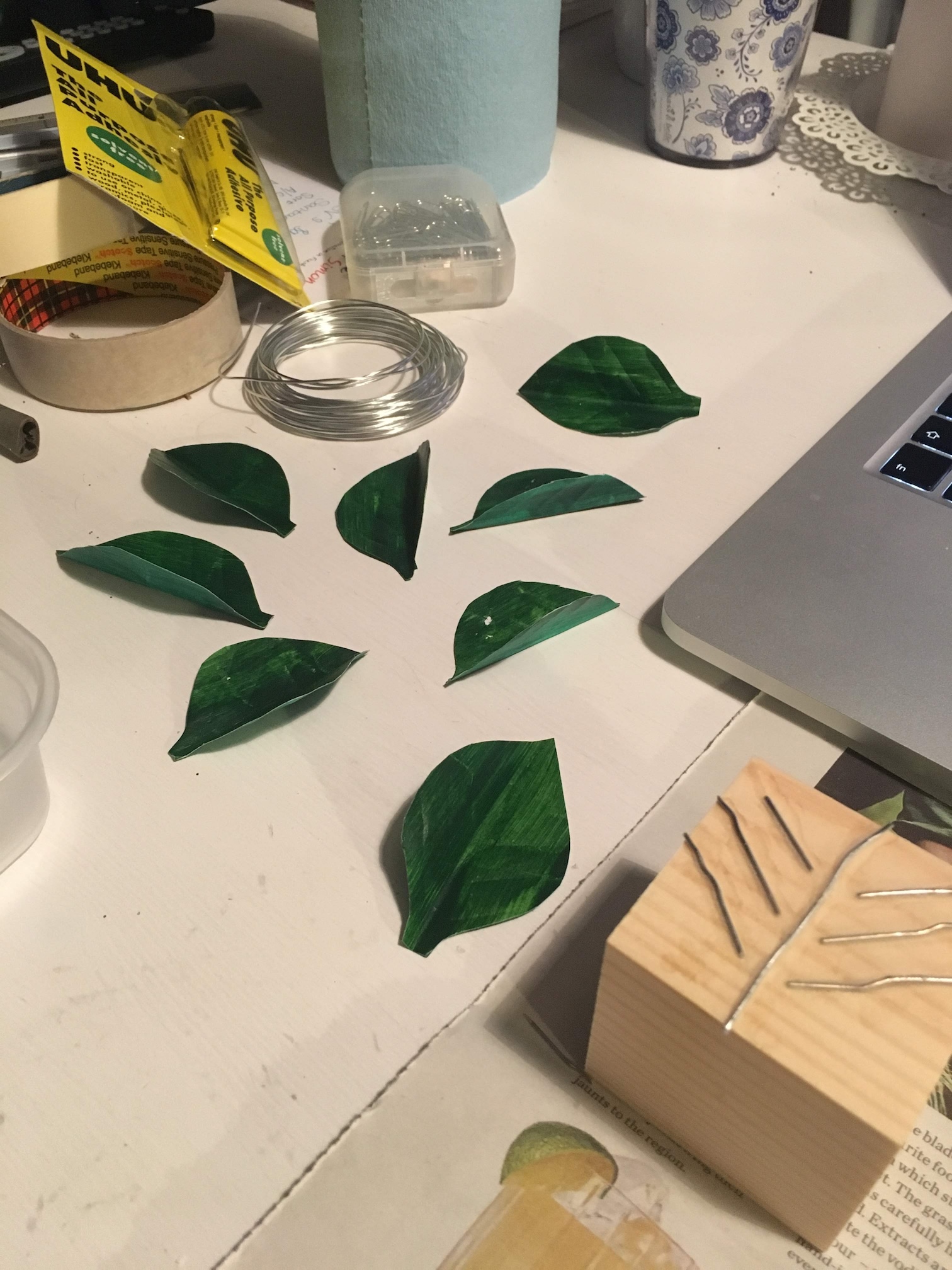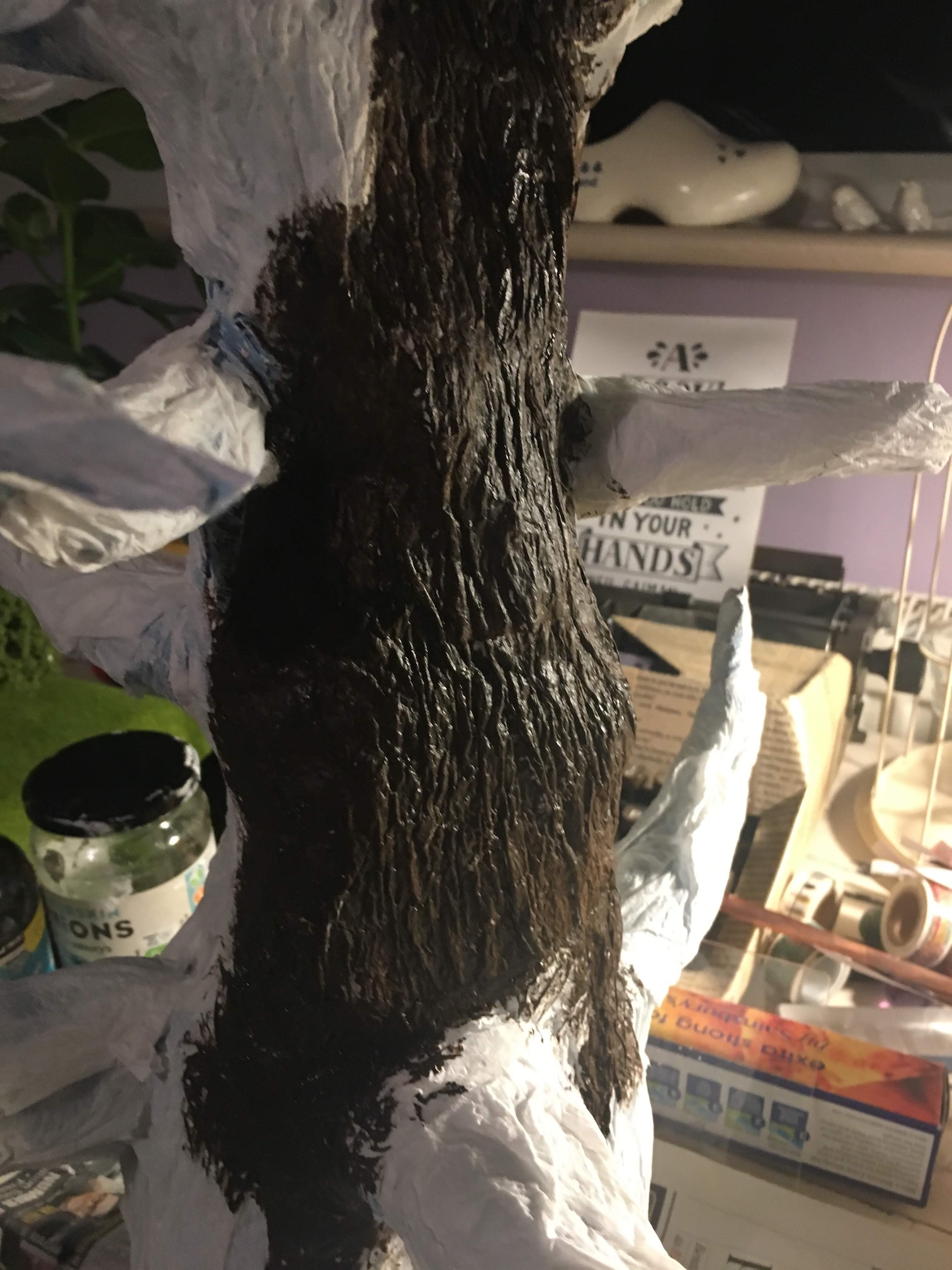 Developing bark texture and leaf forms through layered craft techniques